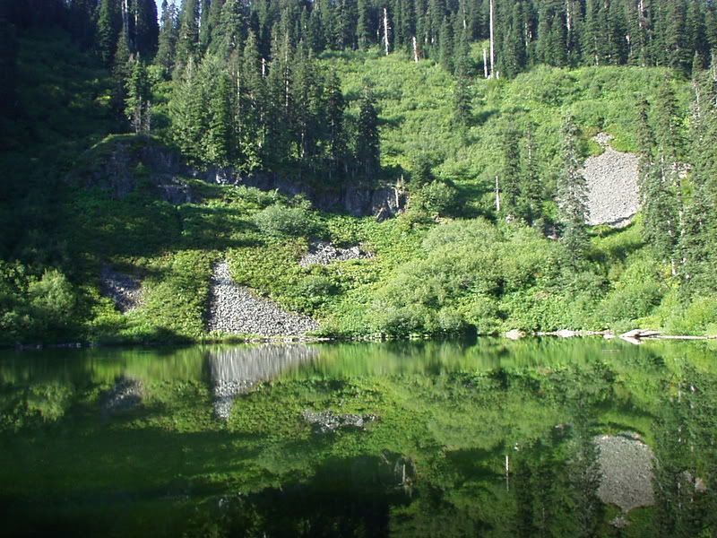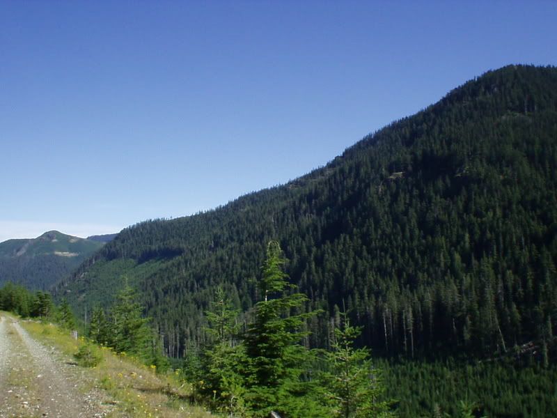 and here is a shot of the terrain on the way out…notice the smiley face on the hill on the left…we thought it was pretty cool. Parts of this forest were logged about 50-60 years ago, but most of it is old growth. It is in the Gifford Pinchot National Forest.